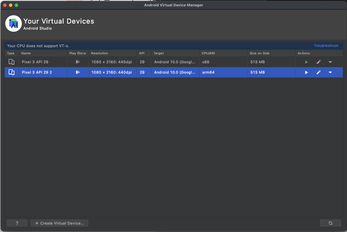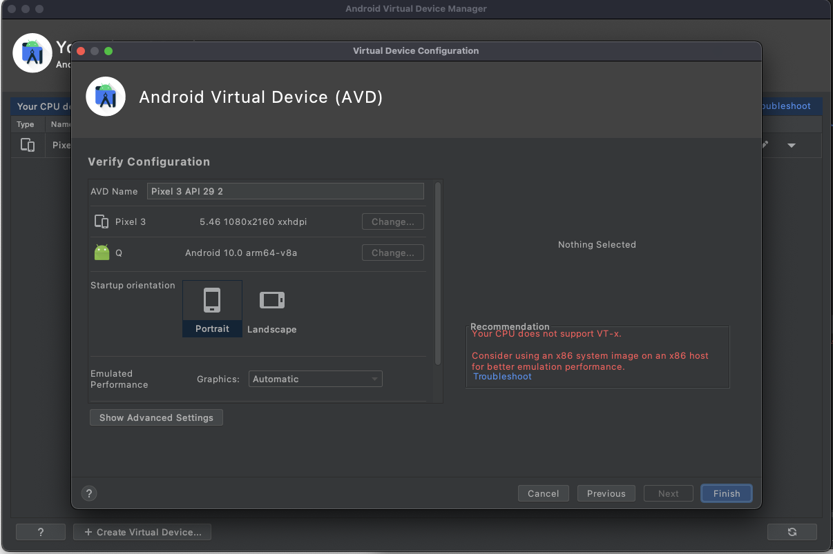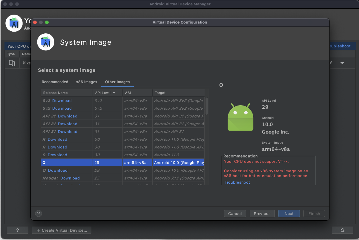 m1 칩을 mac mini를 사용하면서 안드로이드 스튜디오에서 에뮬레이터가